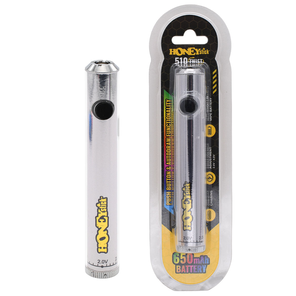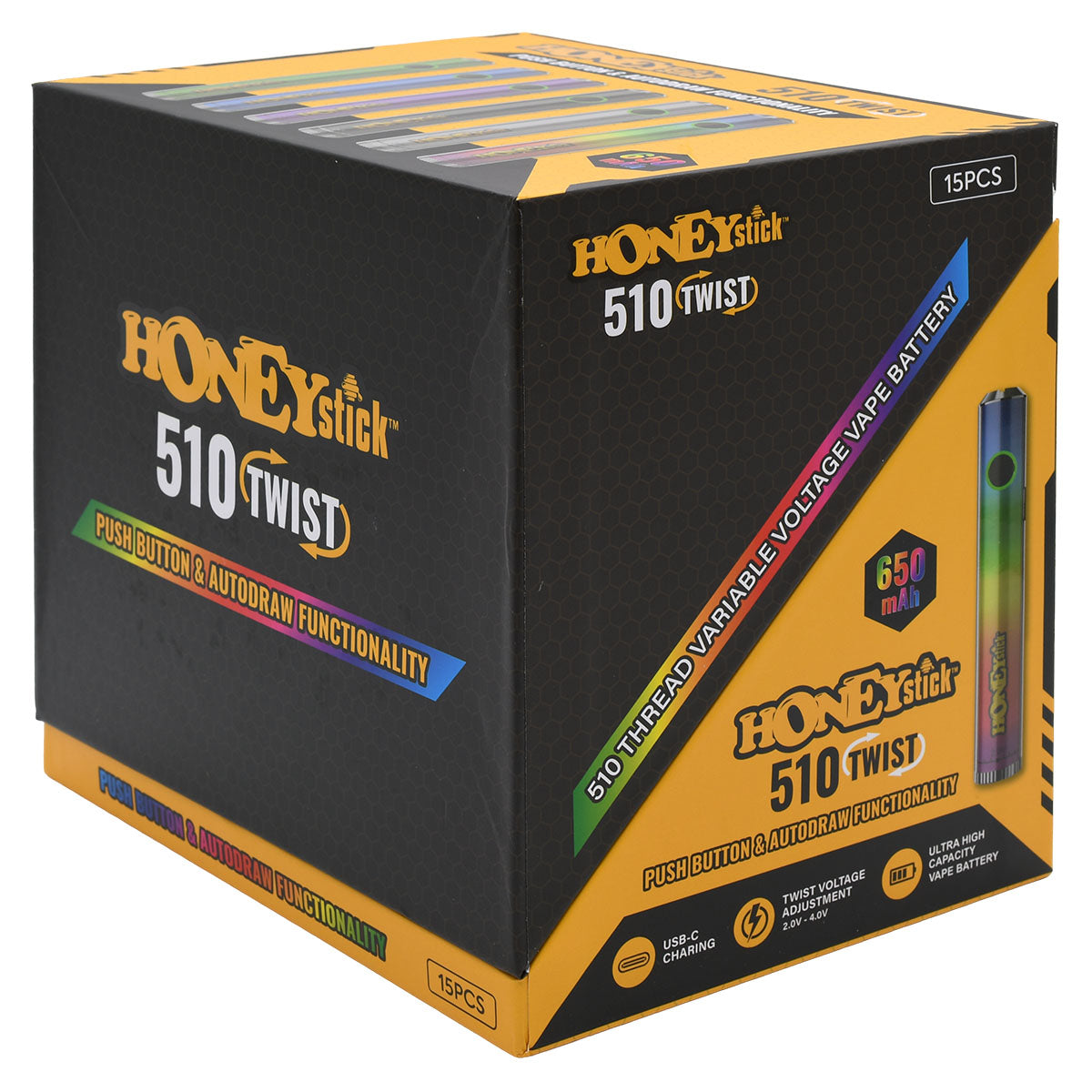 Elevate your vaping with the HoneyStick Twist 510 Battery - where functionality meets style, and power meets both button and draw operating convenience.