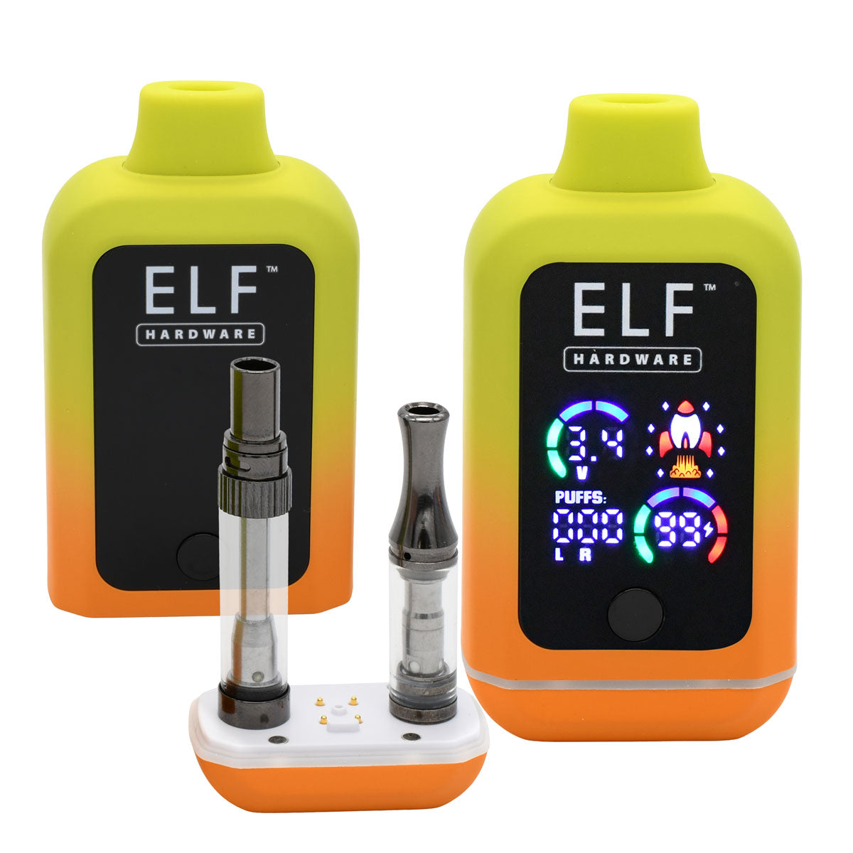 Double trouble, THC oil carts powerhouse: The Elf Canndual Extreme. Forget your basic stick battery - this bad boy came to play hard! The Elf Canndual Extreme Dual Cart Battery isn’t just here to power your session and lift you like a rocket. With a juicy 900mAh battery capacity and a slick HD XL digital display that basically screams "I'm not like other vapes," this device is more high-tech than your ex's excuses. And thanks to three voltage settings (with flashy LED bands to match selected power), you’ve got options for every kind of cloud chaser or heavy hitter—whether you're feeling mellow or want to hit hard like a rocket.