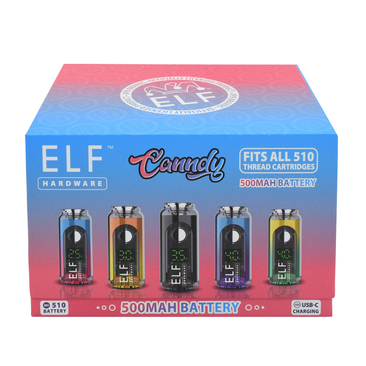 The Elf Canndy 510 thread mini battery with 4 variable voltage settings and digital display. Available in 6 colors and assorted colors 15PC POPs - the retail-ready display option.